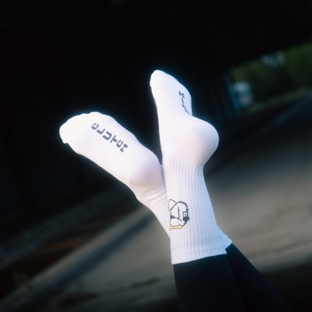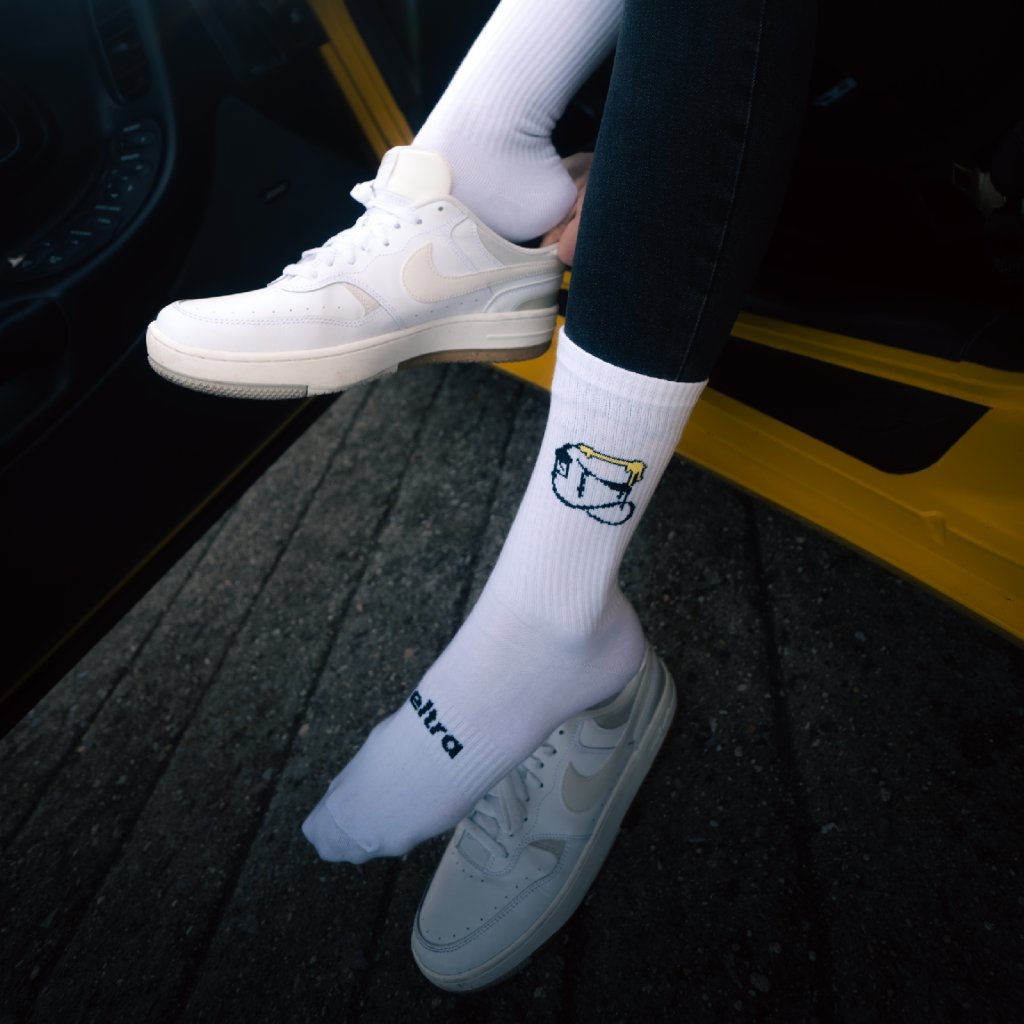 Příjemnej bavlněnej úplet s pružností drží tvar, lem neškrtí, chodidlo dýchá. Bílá je záměr: čistota nahoře, dirty úmysl dole. Do tenisek, do driving bot, nebo na maturák - necháme na tobě.
