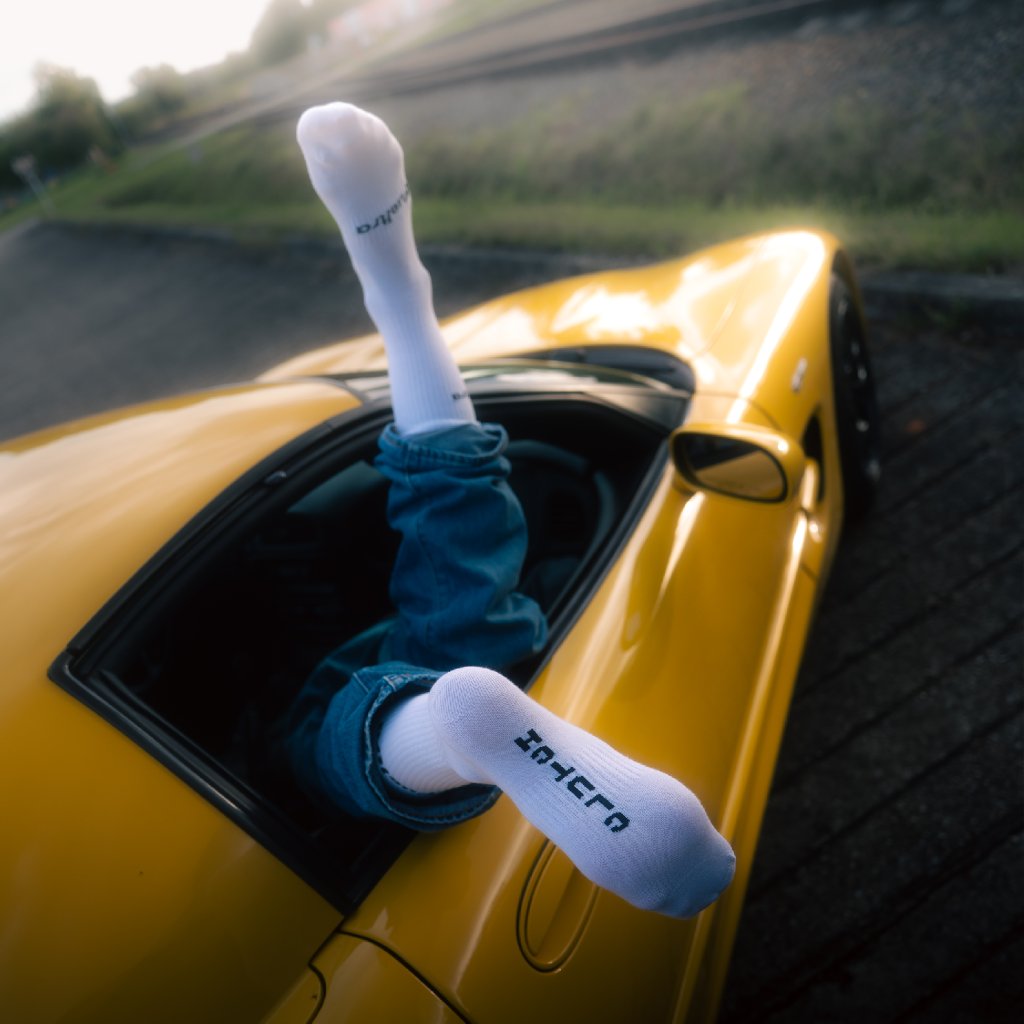 Příjemnej bavlněnej úplet s pružností drží tvar, lem neškrtí, chodidlo dýchá. Bílá je záměr: čistota nahoře, dirty úmysl dole. Do tenisek, do driving bot, nebo na maturák - necháme na tobě.